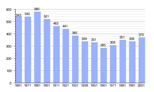 | Gráfica de evolución demográfica de Agra entre 1861 y 2001 |