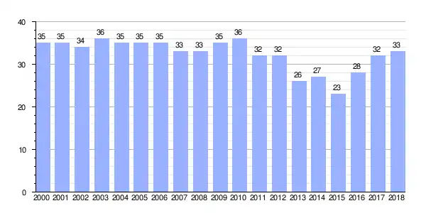 | Gráfica de evolución demográfica de Agramaior entre 2000 y 2018 |