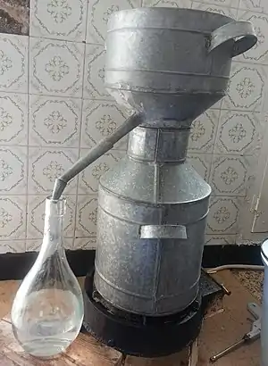 Hay quien hace el agua de azahar en casa, aunque para una mayor conservación se recomienda el destilado en alambique. La flor del naranjo se recolecta sobre el mes de mayo. Para no dañar los futuros frutos se colocan unos sacos bajo los árboles en los que caerán los pétalos. Después se secarán a la sombra y con ellos se realizará el agua de azahar.
