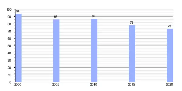 | Gráfica de evolución demográfica de Aguarda entre 2000 y 2020 |