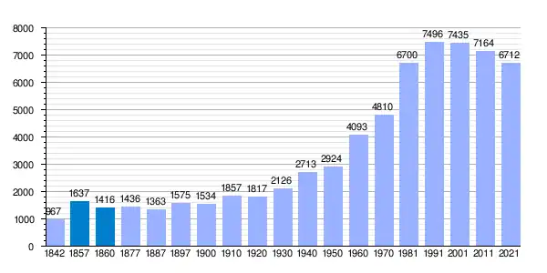 | Gráfica de evolución demográfica de Aguilar de Campoo[12] entre 1842 y 2021 |