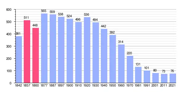 | Gráfica de evolución demográfica de Aguilar del Alfambra[5][6] entre 1842 y 2021 |