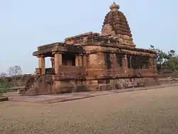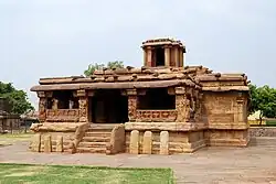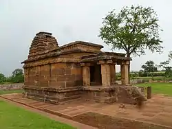 Un buen ejemplo que incorpora todas estas características es el templo de Durga del siglo VIII, encargado por Komarasengama, un ciudadano privado. Esta estructura es también inusual pues tiene columnas que corren alrededor del edificio para formar un peristilo. El garbhagriha (santuario sagrado o) del final del edificio forma una curva semicircular inusual. Los paneles esculpidos como los que representan Durga en su batalla con el demonio búfalo y Shiva junto a Nandi están entre los mejores ejemplos de la antigua escultura india.[4]