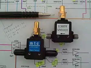 - Eliminación de ondas estacionarias: En algunos casos es difícil, si no imposible, adaptar un componente a la línea en toda la banda de trabajo. Un aislador, aunque no proporciona la máxima transmisión de potencia, elimina las reflexiones indeseadas.