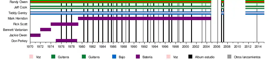 - Randy Owen – voz, guitarra (1969–2004, 2006–07, 2011–presente)