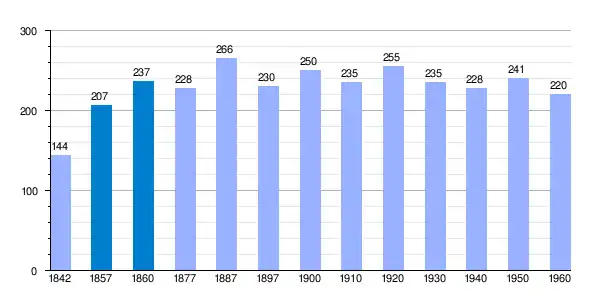 | Gráfica de evolución demográfica de Alaló[5] entre 1842 y 1960 |