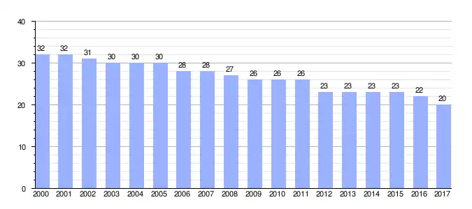 Población de derecho (2000-2017) según los censos de población del INE a 1 de enero de cada año.[7] |