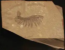 ![]() Specimen of Alalcomenaeus cambricus on display at the Royal Ontario Museum, Toronto | ||