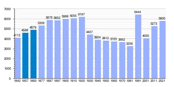 | Gráfica de evolución demográfica de Alaró[2] entre 1842 y 2021 |