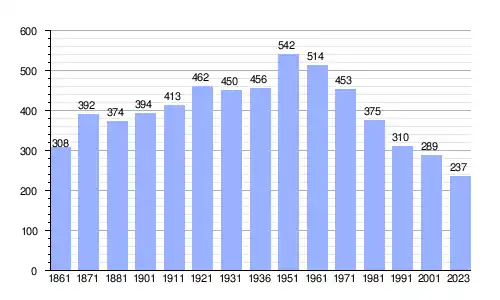 | Gráfica de evolución demográfica de Albagiara entre 1861 y 2023 |