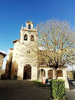 - Iglesia parroquial, de una nave (siglos XVI a XVIII) con pórtico en el lateral derecho con tres arcos de medio punto bajo torre de bóveda gótica, bajo la cual se sitúa la portada con arco de medio punto apilastrado a ambos lados. Torre-espadaña con dos cuerpos, relieves barrocos y escalera adosada. Cementerio adosado.