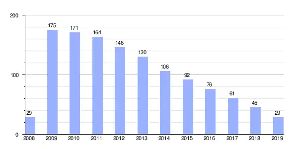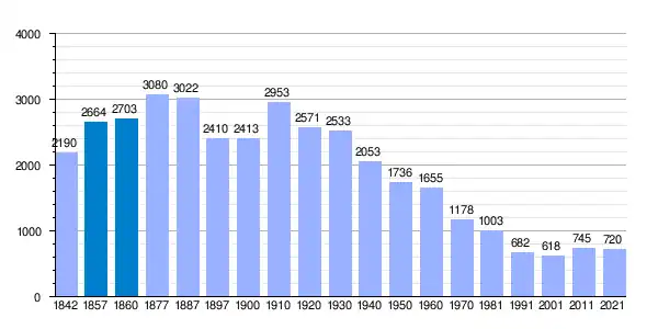 | Gráfica de evolución demográfica de Albanchez[6] entre 1842 y 2021 |