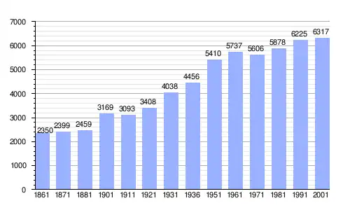 | Gráfica de evolución demográfica de Albanella entre 1861 y 2001 |