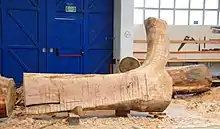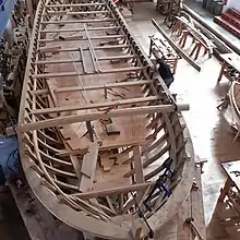 Para la construcción de la réplica del ballenero San Juan de 28 metros de eslora y 7.5 de manga se utilizan métodos y materiales tradicionales y se respeta, en lo posible, el proceso histórico de construcción.[12] Para la madera del casco se han utilizado robles procedentes de bosques de Navarra, que aún conservaban formas de piezas que se lograban guiando las ramas del árbol durante su crecimiento. Esta técnica evitaba tener que ensamblarlas y daba una resistencia a las embarcaciones vascas que hicieron populares y muy valoradas a estas factorías navales.[13][14] También se utilizan abetos de más de 35 metros para hacer los mástiles, estos abetos se traen del bosque de Irati, como se hacía originariamente.[15][16]