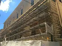 Se cree que la pieza central fue construida por el arquitecto Mederico Blondel basándose en un diseño de Mattia Preti.[38] La entrada principal y las esquinas del edificio son de estilo rústico. Cada uno de los 3 pisos contiene un conjunto de 6 ventanas, y una cornisa corre a lo largo de la fachada entre el primer y el segundo pisos.[34]