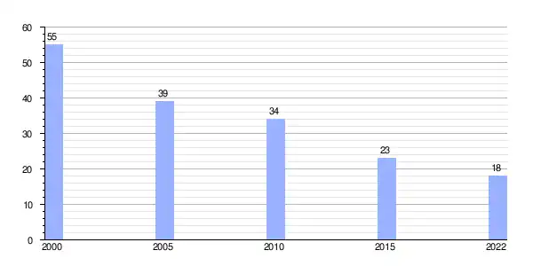 | Gráfica de evolución demográfica de Alberguería entre 2000 y 2022 |