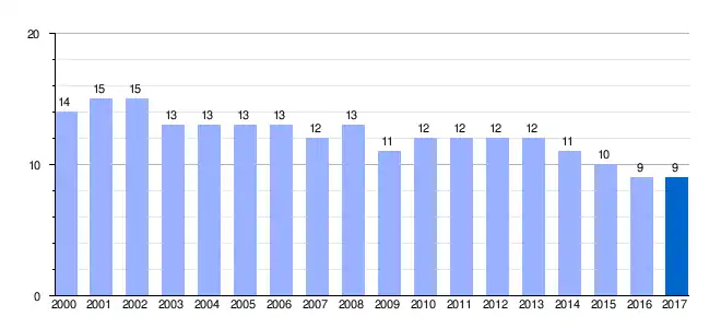 | Gráfica de evolución demográfica de Alberguería de Herguijuela[4] entre 2000 y 2017 |