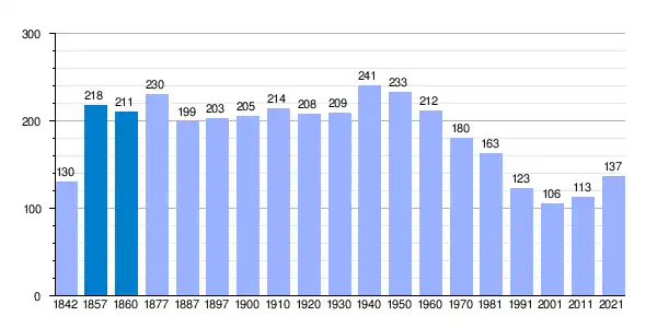 | Gráfica de evolución demográfica de Albero Bajo[9] entre 1842 y 2021 |