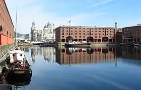 El Albert Dock fue reinaugurado oficialmente en 1988 por el príncipe Carlos de Gales,[36] chozno del príncipe Alberto, la persona que había inaugurado originalmente los muelles.[37] La reinauguración fue programada para que coincidiera con la inauguración del recientemente finalizado Tate Liverpool, que fue apodado el «Tate del norte» y en la época era el único fuera de Londres.[38] La decisión de establecer una galería Tate en Liverpool fue considerada un gran éxito para la ciudad, dado que hizo que albergara la colección nacional de arte moderno en el norte de Inglaterra.[39]