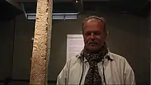 ![]() Alberto Benavides Ganoza junto al obelisco Tello en Chavín de Huántar. | ||