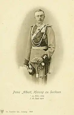 - Esta obra contiene una traducción derivada de «Prince Albert of Saxony (1875–1900)» de Wikipedia en inglés, publicada por sus editores bajo la Licencia de documentación libre de GNU y la Licencia Creative Commons Atribución-CompartirIgual 4.0 Internacional.