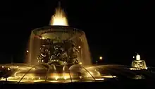 También hay dos fuentes de 1894: una que representa a las aguas tranquilas (oeste), otra a las aguas bravas (este), restaurada esta última en otoño de 1994, tras quedar destrozada por los bombardeos de la II Guerra Mundial. Desde 1999, hay además otra escultura en bronce dedicada al escritor Erich Kästner, del húngaro Máthyas Varga.