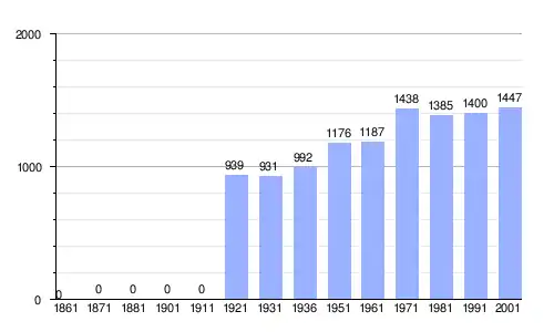 | Gráfica de evolución demográfica de Albiano entre 1861 y 2001 |