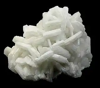 Una variedad de albita es la cleavelandita, que aparece asociada a la turmalina y forma cristales blancos tan extremadamente finos que a veces son transparentes.