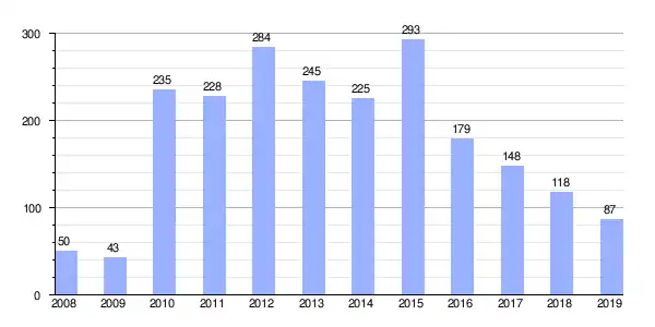 | Gráfica de evolución de Deuda viva del Ayuntamiento de Alcóntar entre 2008 y 2019 |