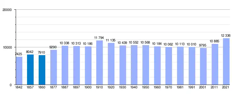 | Gráfica de evolución demográfica de Albox[7] entre 1842 y 2021 |