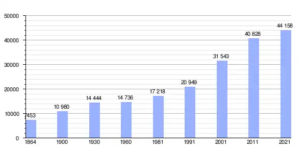 | Gráfica de evolución demográfica de Albufeira entre 1864 y 2021 |