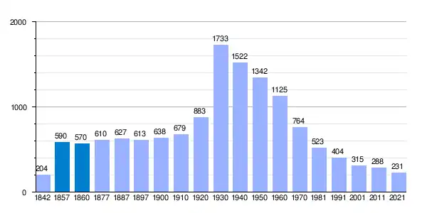 | Gráfica de evolución demográfica de Alcalá de Gurrea[8] entre 1842 y 2021 |
