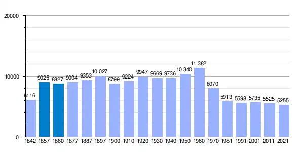 | Gráfica de evolución demográfica de Alcalá de los Gazules[7] entre 1842 y 2021 |