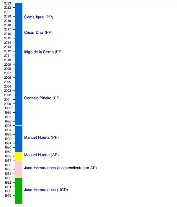 - Juan Hormaechea Cazón (1977-1979) (En 1979 cesó con motivo de las elecciones municipales, siendo reelegido el día 19 de abril de 1979. Más tarde volvería a ser reelegido al frente de la Coalición Popular en calidad de independiente).