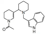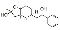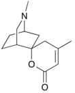 - e) Genalcaloides: —u óxidos aminados de alcaloide— son derivados por oxidación de los alcaloides que contienen el grupo R=(NO)-R, donde el nitrógeno tiene número de oxidación +5, en contraposición a los alcaloides normales, donde es trivalente (R=N-R). Su acción es la misma que la del alcaloide del cual provienen, pero es más pausada. Se nombran añadiendo el prefijo gen- al nombre del alcaloide. Algunos genoalcaloides se encuentran en la naturaleza, como la geneserina (derivado del alcaloide eserina (fisostigmina)) presente en el haba de Calabar.[4]