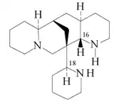 Piperidinas: Coniina, coniceína, pinidina, lobelanina, ácido pipecólico, glutanimina, indigoidina, sedamina, lobelina, anaferina, piperina, nufamina, nufaramina, carpaína, estenusina, ácido evonínico, ácido wilfórdico, ácido edulínico, evonina, rohitukina, crotacuminas, capitavina, cassina, himbacina, astrofilina, arenosclerina, haliclonaciclaminas, batzelásidos, lactidomicinas, estreptimidina, adenocarpina, amnodendrina, prosopinina, criptoforina.