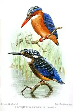 - Ficha de Alcedo Thomensis Archivado el 12 de agosto de 2014 en Wayback Machine. en BirdLife International.