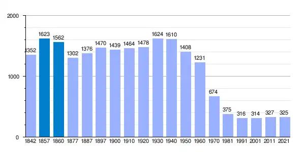| Gráfica de evolución demográfica de Alcocer[3] entre 1842 y 2021 |