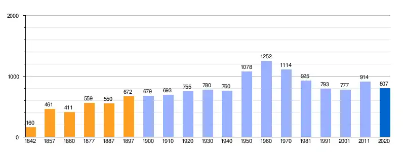 Población de derecho (1842-1897, excepto 1857 y 1860 que es población de hecho) según los censos de población del siglo XIX. Población de derecho (1900-1991) o población residente (2001-2011) según los censos de población del INE. Población según el padrón municipal de 2019 del INE. |