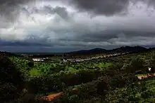 ![]() La sierra de la Mosca vista desde el casco antiguo de Cáceres al atardecer | ||