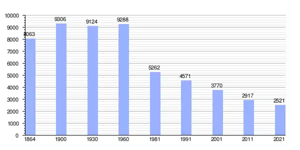 | Gráfica de evolución demográfica de Alcoutim entre 1864 y 2021 |