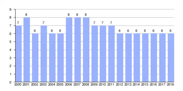 | Gráfica de evolución demográfica de Aldrá entre 2000 y 2018 |