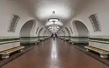 La estación fue diseñada por S. Kravets, Y. Kolesnikova y G. Golubev e, inicialmente, estaba previsto que luciera una decoración tan ostentosa como las estaciones anteriores. Sin embargo, su diseño fue modificado por la oposición de Jruschov a los elementos decorativos innecesarios. Como resultado, la estación cuenta con unas líneas sorprendentemente limpias a pesar de haber sido construida durante los años 1950.