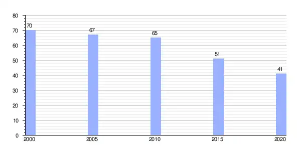 | Gráfica de evolución demográfica de Alence (aldea) entre 2000 y 2020 |