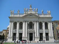 El más notable de ellos fue la fachada de la catedral de Roma, la propia basílica de San Juan de Letrán, cuyo encargo recibió después de un concurso para su terminación (1733-1736). La severidad y el carácter palacial de la fachada provocaron rechazo y controversia en los círculos artísticos romanos del momento, pero fueron aplaudidos más tarde con el pleno triunfo del Neoclasicismo.[2]