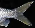Los peces utilizan múltiples aletas, por lo que es posible que una aleta determinada pueda tener una interacción hidrodinámica con otra aleta. En particular, las aletas inmediatamente aguas arriba de la aleta caudal (cola) pueden ser aletas próximas que pueden afectar directamente a la dinámica del flujo en la aleta caudal. En 2011, unos investigadores utilizaron técnicas de imagen volumétrica para generar "las primeras vistas tridimensionales instantáneas de estructuras de estela producidas por peces que nadan libremente". Descubrieron que "los batidos continuos de la cola daban lugar a la formación de una cadena enlazada de anillos de vórtice" y que "las estelas de las aletas dorsal y anal son arrastradas rápidamente por la estela de la aleta caudal, aproximadamente en el marco temporal de un batido posterior de la cola". [12]