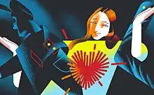 Una ilustración que muestra a Aleksandra Skochilenko siendo arrastrada por la policía.