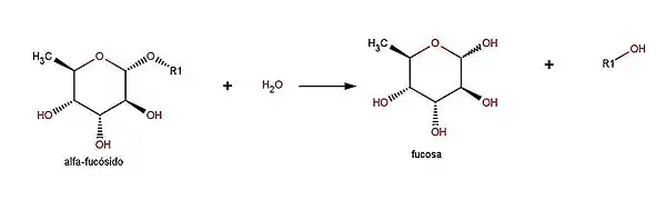 α-L-fucósido + H2O -----> L-fucosa + un alcohol