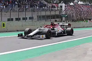 El Alfa Romeo C38 fue un monoplaza de Fórmula 1 diseñado por Alfa Romeo Racing para competir en la temporada 2019.[2] La unidad de potencia, el sistema de transmisión de ocho velocidades y el sistema de recuperación de energía son de Ferrari. El coche fue conducido por Kimi Räikkönen, que hizo su debut en la escudería italiana tras estar 5 años con Ferrari, y por Antonio Giovinazzi, que regresó a la máxima categoría tras participar en los dos primeros Grandes Premios en 2017.[3]