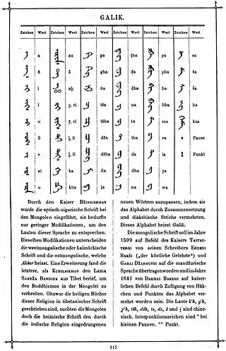 El alfabeto gali (conocido también como alfabeto ali gali o ali-gali; en mongol: cirílico - Али-гали үсэг Ali-gali üseg, tradicional - ᠠᠯᠢ ᢉᠠᠯᠢ ᠦᠰᠦᠭ Ali Gali u̇su̇g; sánscrito: आलि कालि āli kāli) es una extensión del alfabeto mongol clásico creada en 1587 por un traductor llamado Ayuush Güüsh (en mongol: Аюуш Гүүш) inspirado por el tercer dalái lama, Sonam Gyatso.[2]
